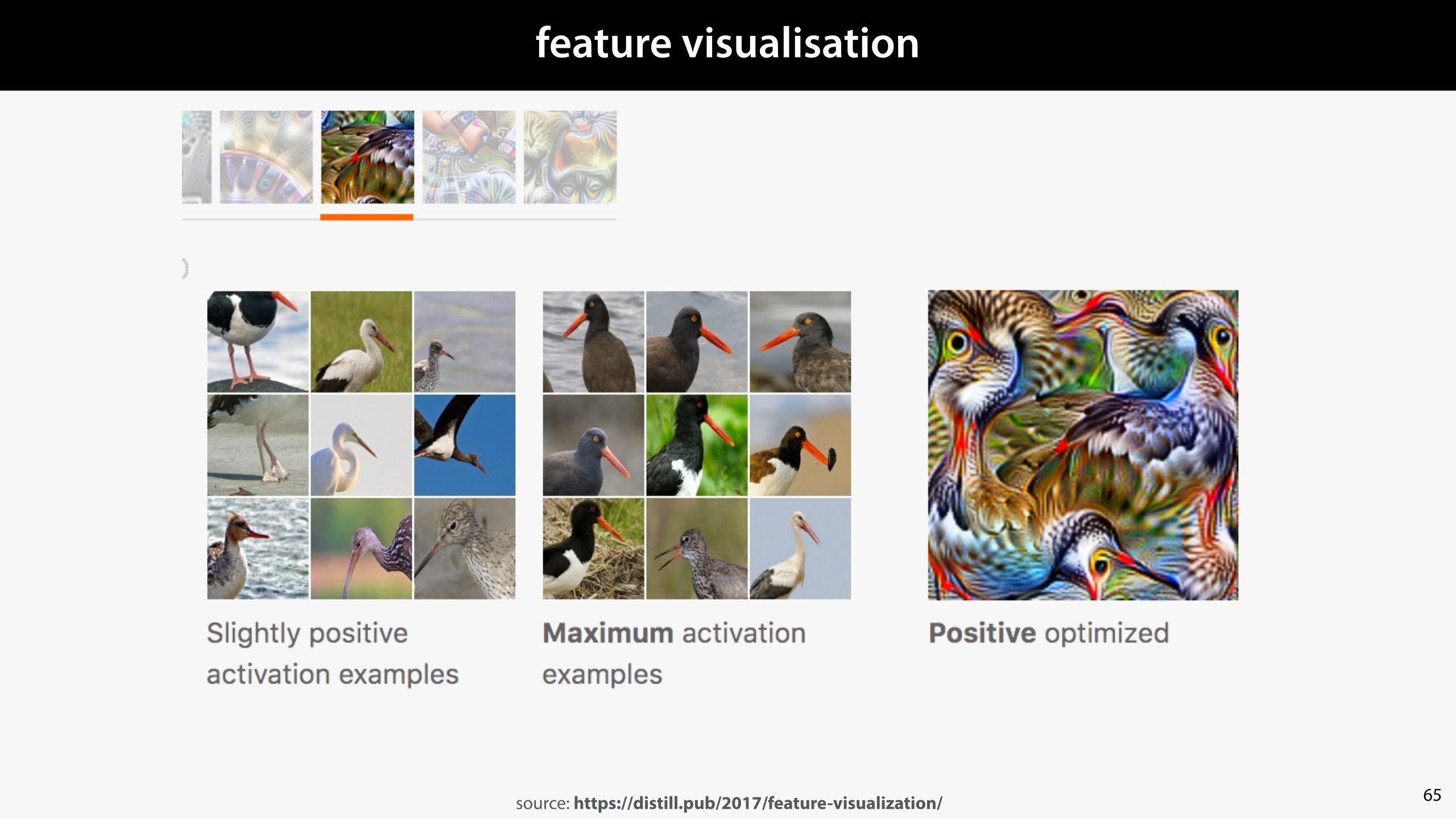 Here is a feature visualisation example for a more recent network trained on imagenet, a collection of 14 million images with diverse subjects.