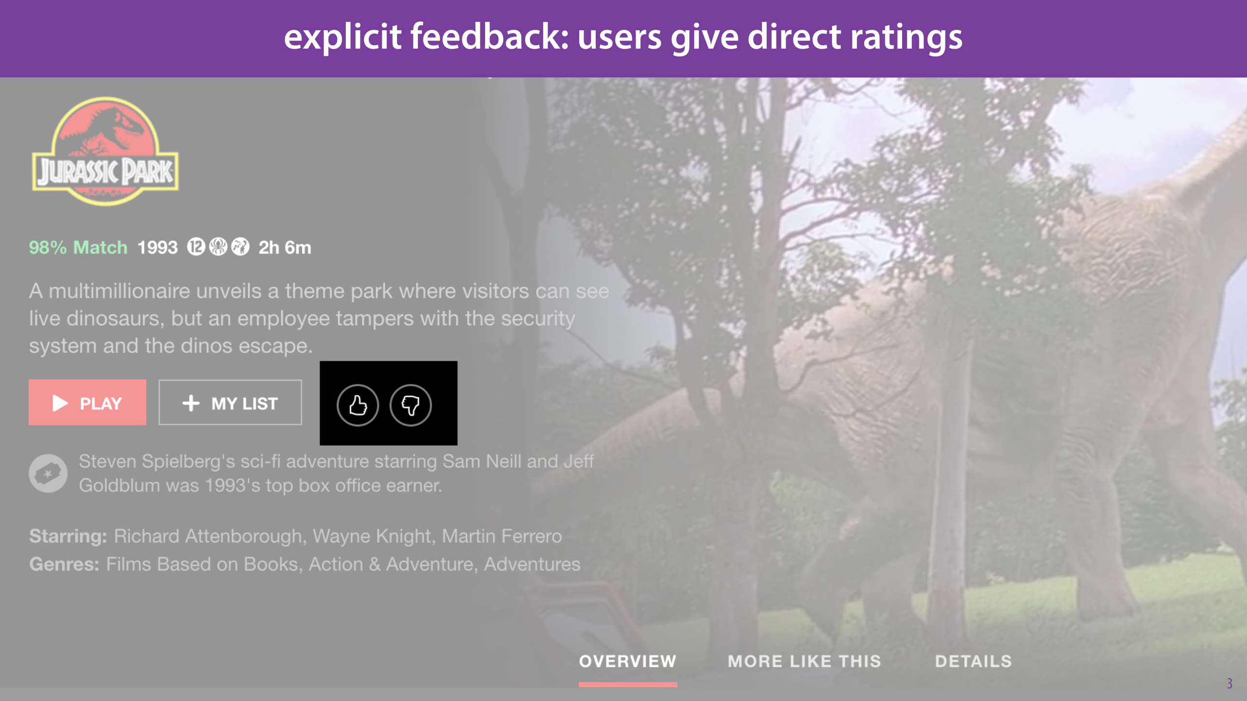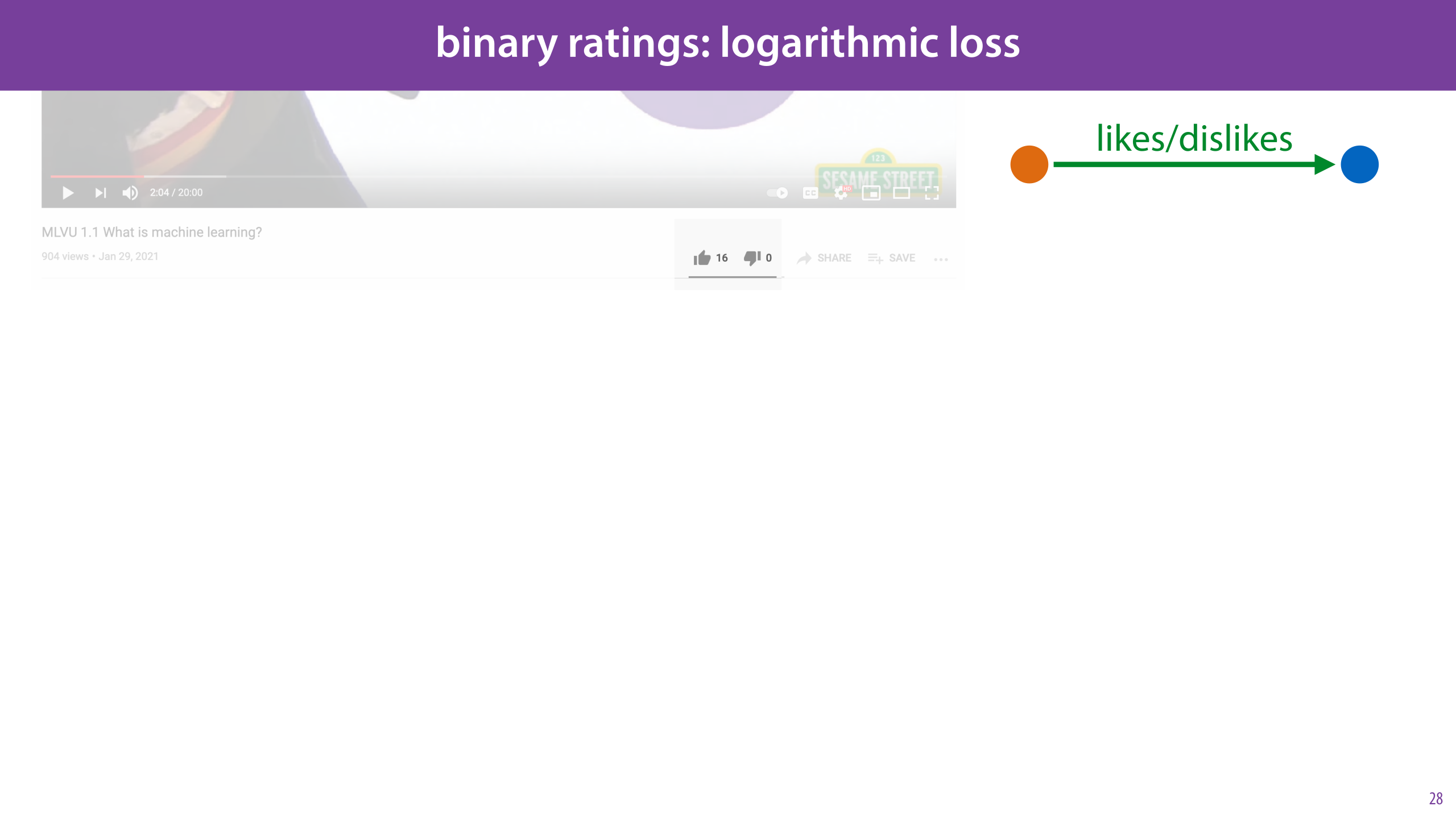 In many modern recommender systems, we only get positive ratings. You can “like” something, but you can’t dislike it or assign a number.